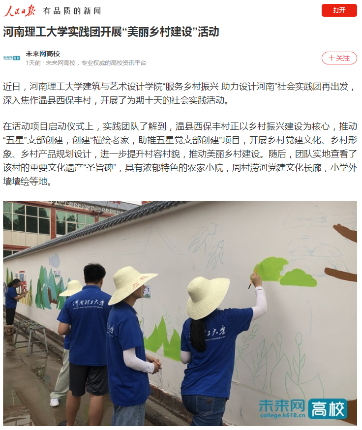 河南理工大学社会实践团:“设计”下乡 用创意点亮“美丽乡村”
