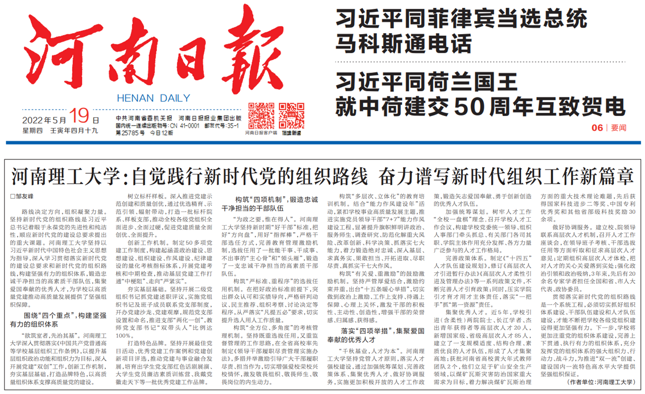 河南理工大学:自觉践行新时代党的组织路线 奋力谱写新时代组织工作新篇章