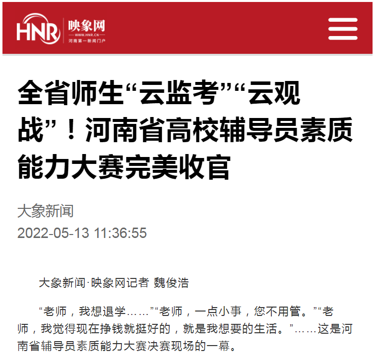 “云考试”“云服务”“云评审”“云观摩” 河南省辅导员大赛:全面实现以赛促学新提升