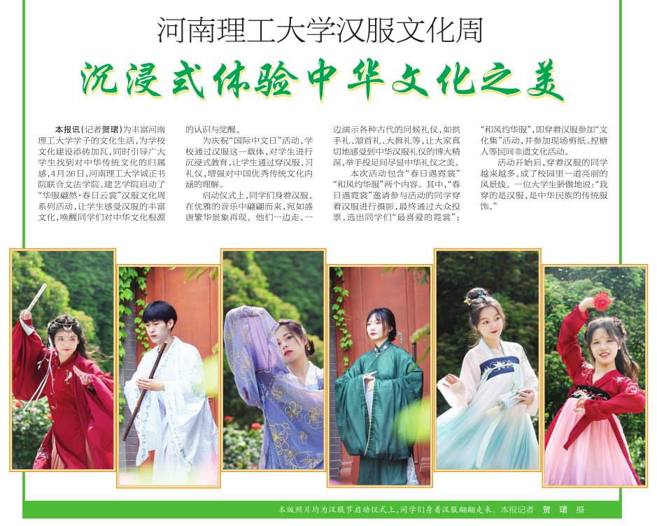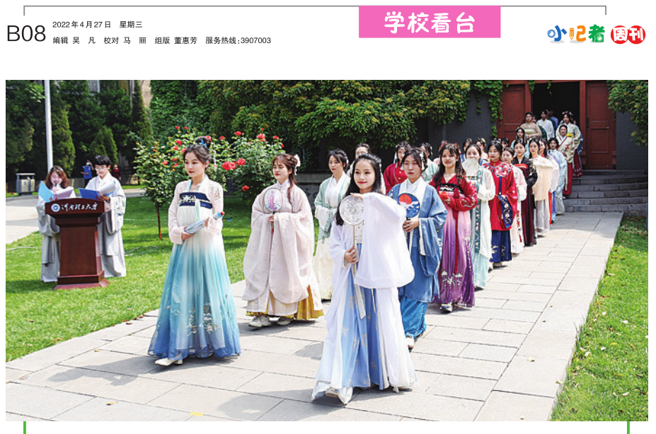 活动开始后,同学们穿着各种规制、颜色各异的汉服,或赏花游园,或翩翩起舞,成为春日校园独特的风景。通过此次活动,许多原本不了解汉服的大学生都学习到了汉文化和汉服知识,纷纷表示,愿意穿汉服、学汉礼,积极参与到宣传汉服文化、弘扬中华传统文化的活动中来。(焦作日报记者 贺珺)