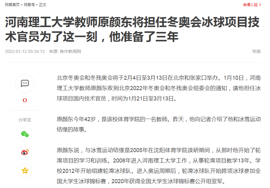 北京冬奥会和冬残奥会将于2月4日至3月13日在北京和张家口举办。1月10日,河南理工大学教师原颜东收到北京2022年冬奥会和冬残奥会组委会的通知,请他担任冰球项目国内技术官员,时间为1月21日至3月13日。