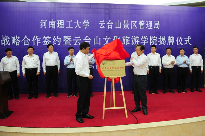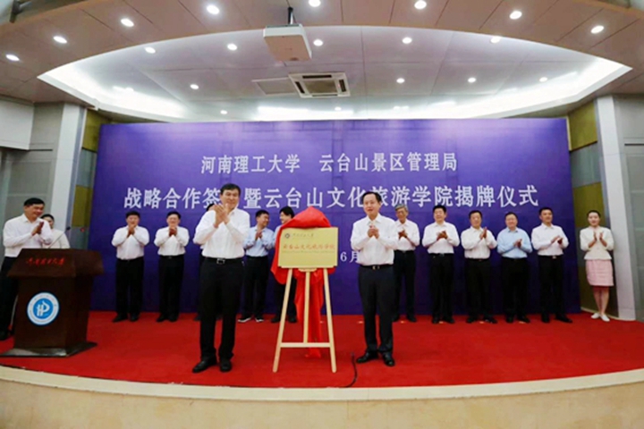 6月2日,河南理工大学与云台山景区管理局战略合作签约暨云台山文化旅游学院揭牌仪式在该校举行。