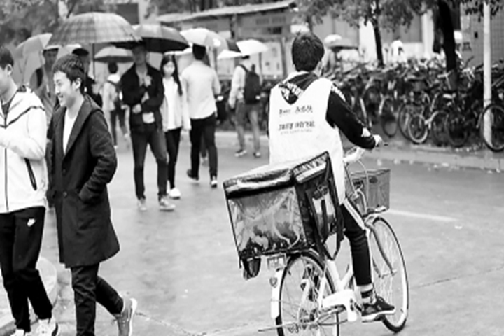 很多学生说,学校推出送餐服务,对于学生来说,方便,省时间,便宜。送餐学生则表示,闲着也是闲着,每天可以挣到一天的饭钱。