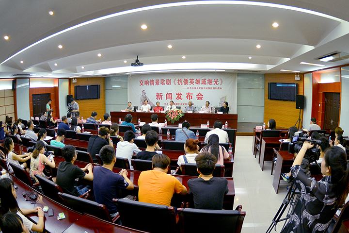 东方今报焦作讯 为纪念中国人民抗日战争胜利70周年,7月9日,由河南理工大学音乐学院排演的交响情景剧《抗倭英雄戚继光》新闻发布会在该校举行。