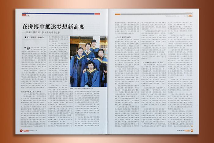 2013年7月中旬,《教育》旬刊第20期以《在拼搏中抵达梦想新高度——脑瘫计算机博士张大奎的成才故事》为题并配发图片,报道我校毕业生张大奎自强不息,自信自立,最终梦想成真的艰辛历程。相关内容如下: