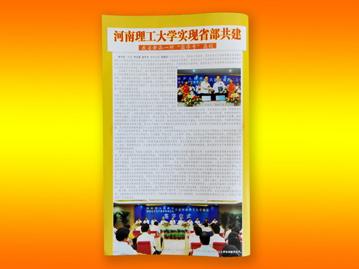2011年7月中旬,《河南教育》以《河南理工大学实现省部共建 我省新添一所“国字号”高校》为题并配发图片,报道河南省政府、国家安全生产监督管理总局共建河南理工大学协议签字仪式在郑州举行。相关内容如下: