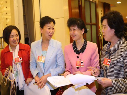 《东方今报》:游吟歌(右二)与代表们一起讨论政府工作报告