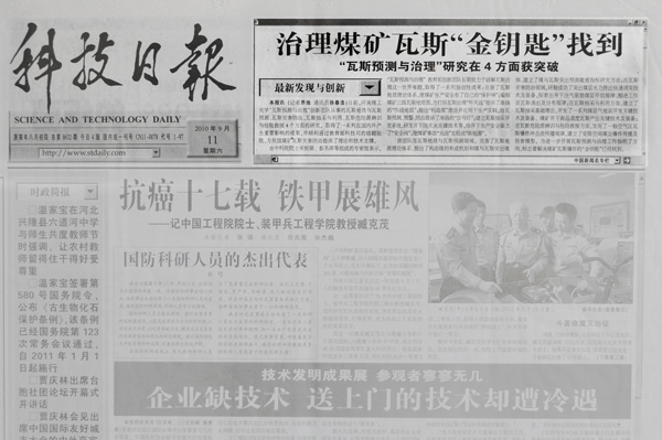 9月11日,《科技日报》在第1版报眼的最显著位置以“最新发现与创新”成果形式隆重推出,以《治理煤矿瓦斯“金钥匙”找到 “瓦斯预测与治理”研究在4方面获突破》为题,报道我校“瓦斯预测与治理”教育部创新团队长期致力于破解瓦斯治理这一世界难题,取得了一系列独创性成果。科技网等予以转载.相关内容如下: