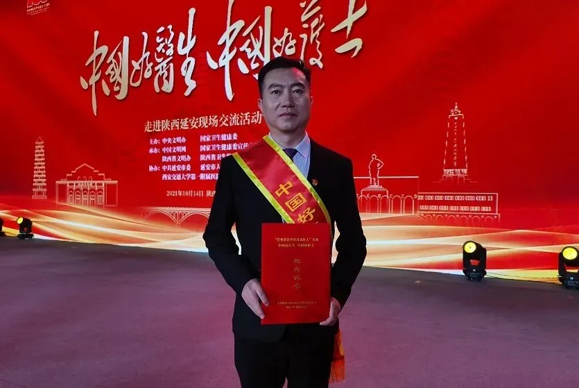 河南理工大学第一附属医院医生王建峰,2020年初主动请缨,奔赴武汉战“疫”,在陕西延安现场交流活动中,荣获“中国好医生”称号。