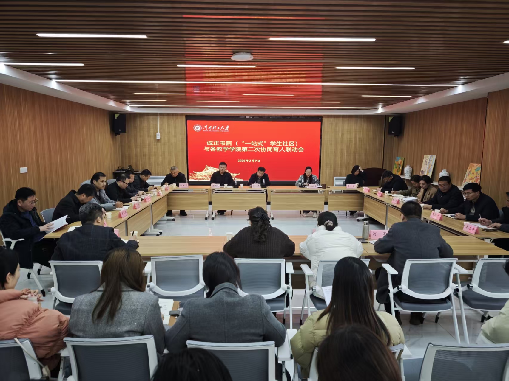 3月9日下午,诚正书院(“一站式”学生社区)与南校区各教学学院第二次协同育人联动会在社区210会议室举行。