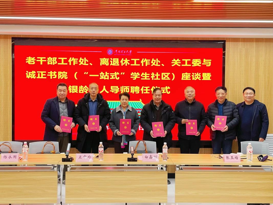 12月11日下午,老干部处、离退休工作处、关工委与诚正书院(“一站式”学生社区)座谈暨银龄育人导师聘任仪式在诚正书院二楼会议室举行。