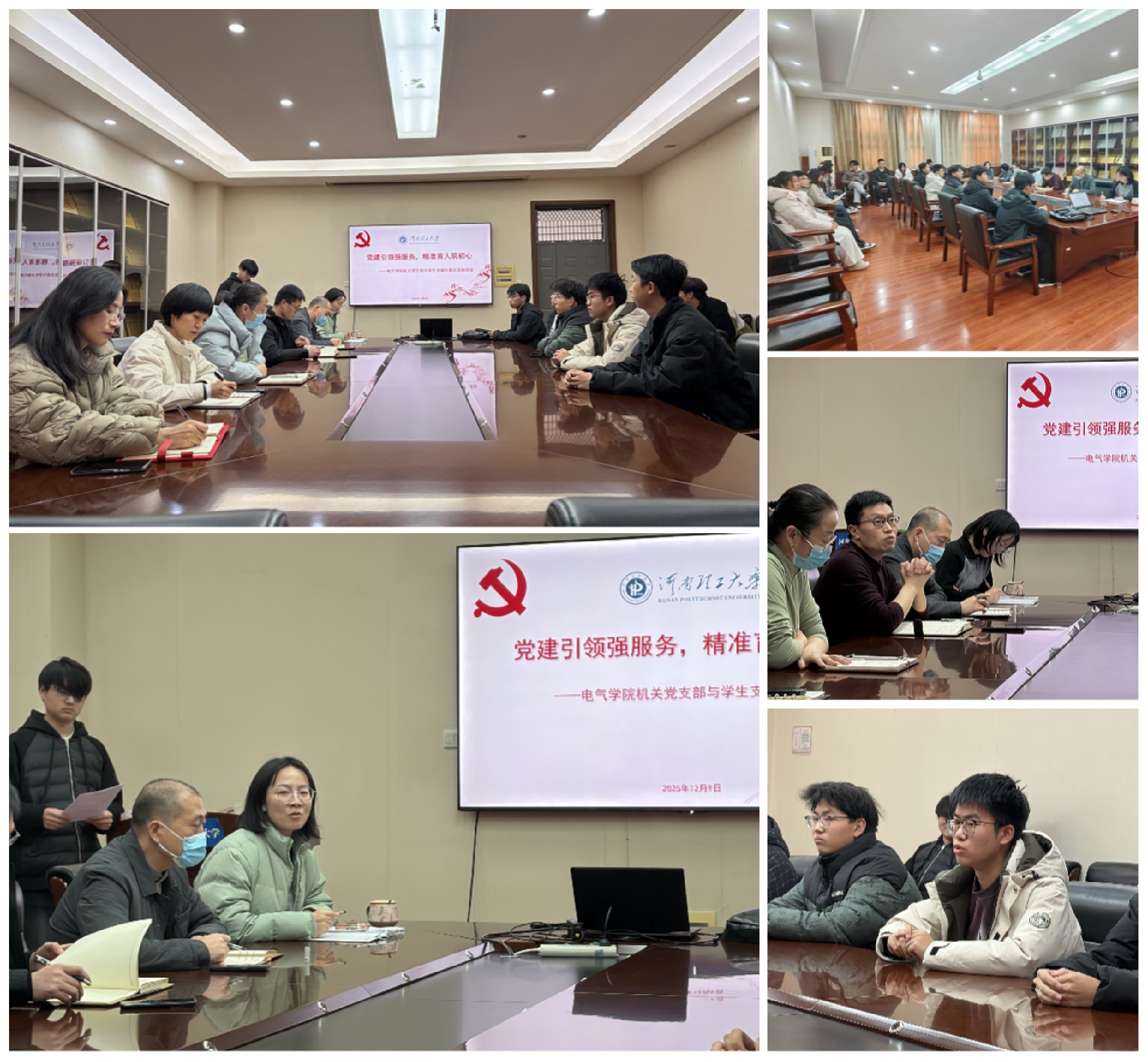 为搭建学院机关部门与学生高效沟通桥梁,精准对接学生成长需求,提升服务育人质效,12月9日下午,电气学院机关党支部在院楼D215召开“党建引领强服务,精准育人筑初心”交流座谈会。
