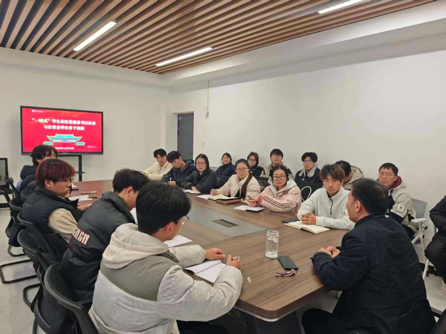 12月16日,“一站式”学生社区负责人与“一站式”学生社区自我管理委员会学生骨干进行座谈交流。