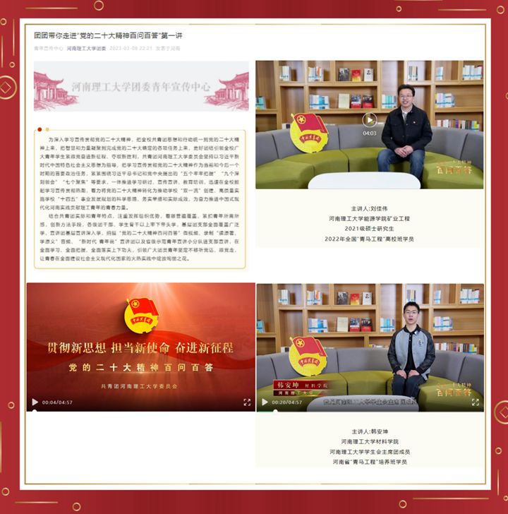 近期以来,学校共青团系统紧紧围绕学习宣传贯彻党的二十大精神这条主线,坚持“三维发力”,形成全覆盖、立体化、浸入式学习宣传体系,着力在全面学习、全面把握、全面落实上下工夫,切实把全校共青团思想和行动统一到党的二十大精神上来,引领全校青年学生争做党的二十大精神的积极传播者和忠实践行者。注重“三个结合”,抓好理论学习全员覆盖。“点”上发力,各级团干部充分发挥示范引领带动作用,...