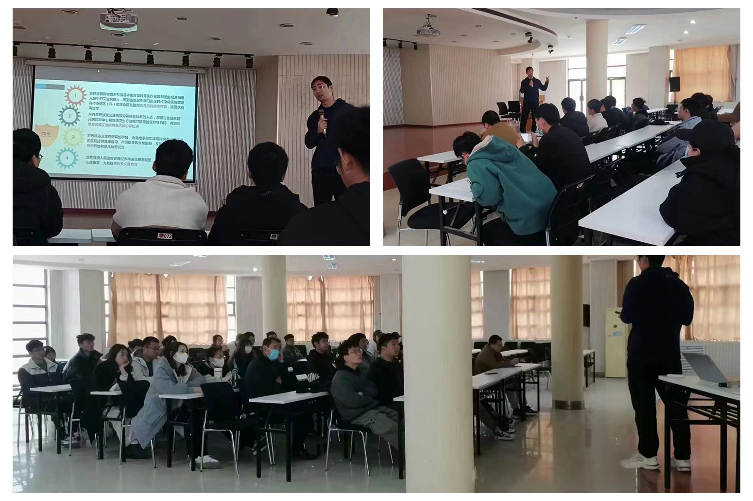 为进一步提高我校学生预防艾滋病的意识和能力,普及艾滋病预防知识,3月18日上午,校医院、校红十字协会邀请焦作市示范区疾控中心陈乾龚老师在大学生活动中心报告厅开展了预防艾滋病健康教育公益讲座。