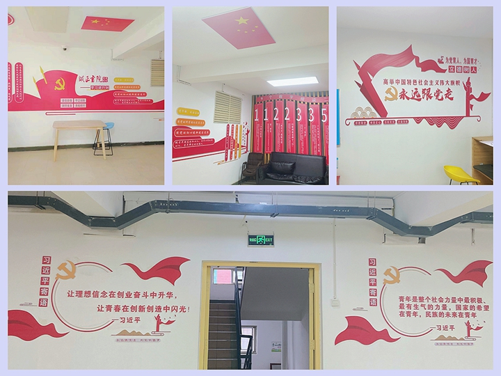 诚正书院在男生宿舍二楼打造习近平新时代中国特色社会主义思想文化墙。