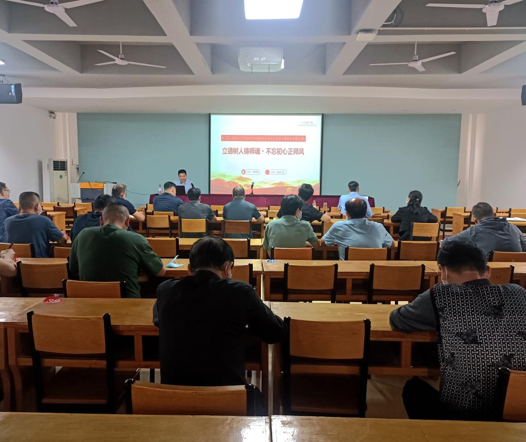 5月30日下午,创新创业学院(工程训练中心)院长褚怀保以《立德树人铸师魂·不忘初心正师风 》为题,在学院多媒体会议室为全体教职工讲授主题教育专题党课。