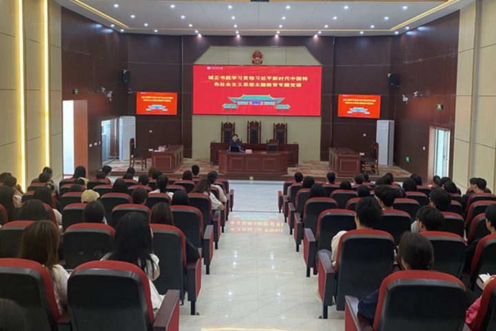 5月31日,诚正书院党委书记、院长孙彦在北校区模拟法庭讲授主题教育专题党课,作主题为“中国化时代化的马克思主义指引中国共产党迈向新征程”的报告。
