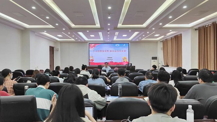 5月30日下午在经管楼1105室该院党委书记许传阳以“学习思想强党性,踔厉奋发向未来”为题讲授主题教育专题党课。