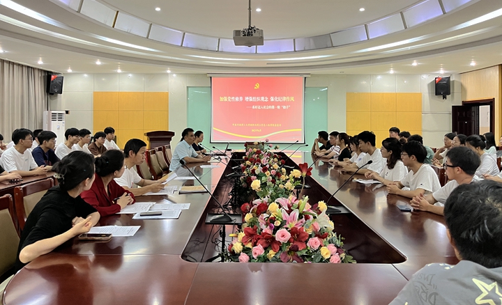 6月13日下午,机械学院在该院205会议室召开“新党员宣誓·佩戴党员徽章暨2023届毕业生党员主题教育”大会。