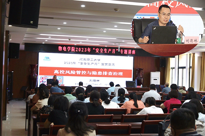 6月13日下午,物电学院邀请河南省应急管理专家、应急管理学院教授刘德林在综合实验楼226会议室作“安全生产月”专题讲座。