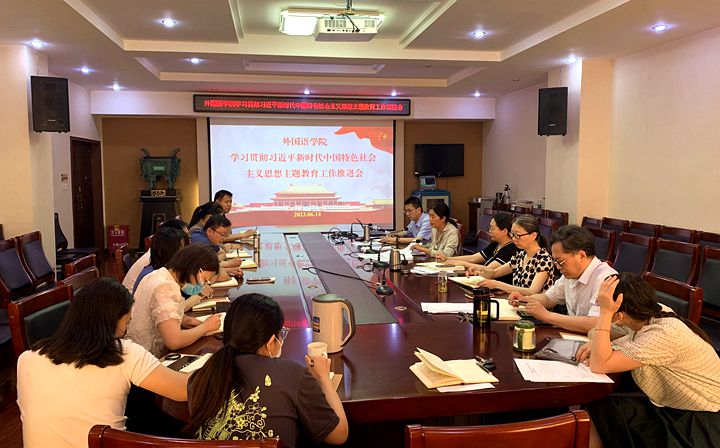 6月14日上午,外国语学院在文综楼311会议室召开学习贯彻习近平新时代中国特色社会主义思想主题教育推进会。