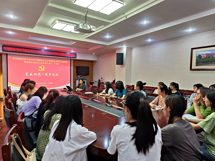 6月15日下午,外国语学院党委书记许荣梅在文综楼311会议室以《青春向党·筑梦远航》为题为全体毕业生党员讲授党课。