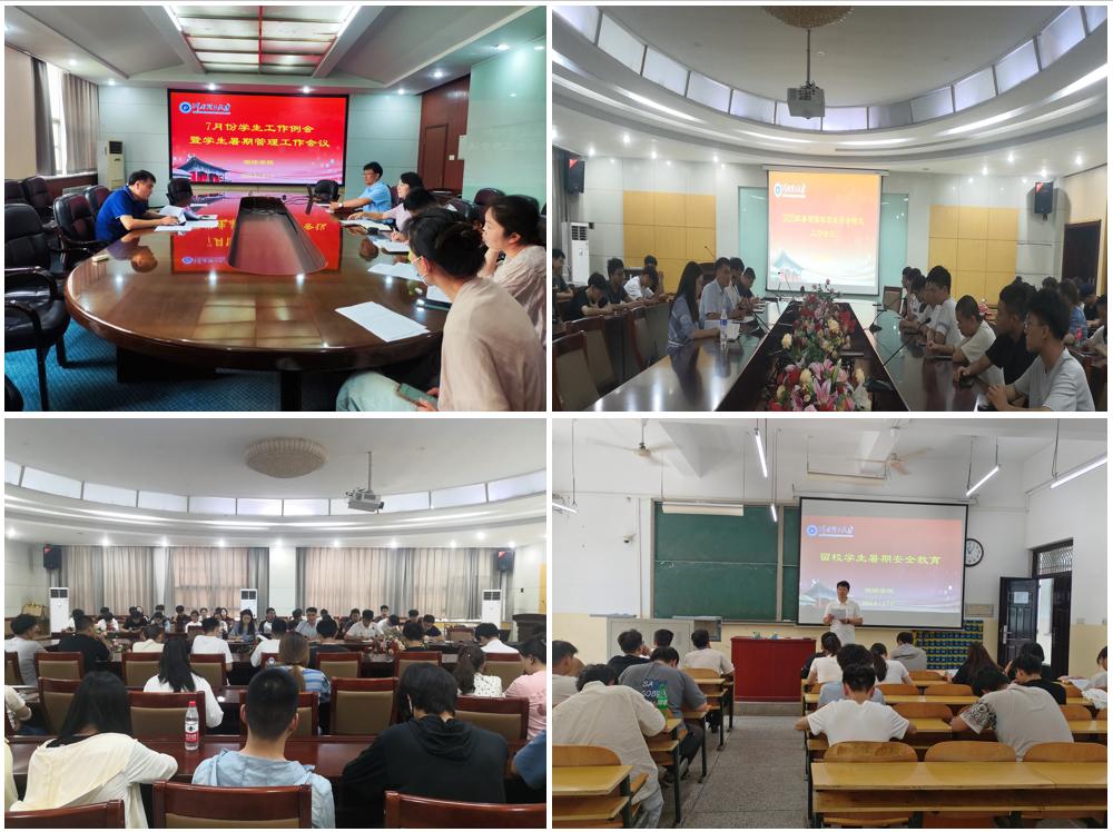 本网讯(通讯员 竺梦雅 曾子俊/文 秦璐/图)为进一步做好暑期安全稳定工作,7月6日上午,测绘学院于该院三楼会议室召开本月学生工作例会暨学生暑期管理工作会议。该院党委副书记郭学鹏、学工办主任、全体专兼职辅导员参加会议。会议由郭学鹏主持。会上,郭学鹏传达了《河南理工大学2023年暑假学生安全教育管理通知》,强调学院要高度重视暑期学生安全教育工作,要重点开展学生人身财产安全、消防安全、交通安全、实习实践等安全...