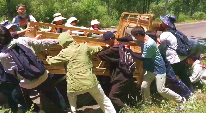 7月5日上午,资环学院地科系师生在登封实习之时,突遇一辆大型三轮车被困排水渠,在场师生毫不犹豫伸出援助之手,冒着酷暑高温,齐心协力将三轮车抬离沟渠