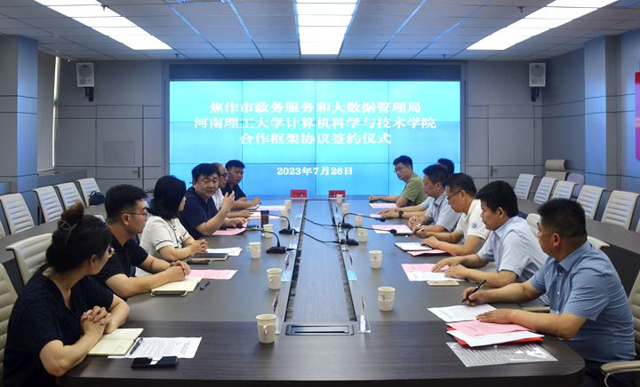 7月26日上午,计算机学院与焦作市政务服务和大数据管理局合作框架协议签约仪式在市政务服务和大数据管理局三楼会议室举行。