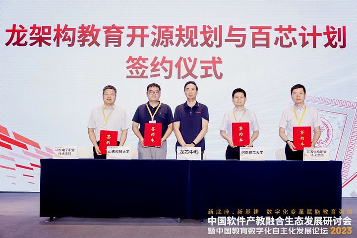 计算机学院近期参加了由工业和信息化部教育与考试中心等单位指导,龙芯中科技术股份有限公司承办的“2023中国软件产教融合生态发展研讨会暨中国教育数字化自主化发展论坛”,并签约龙架构教育开源规划与百芯计划。