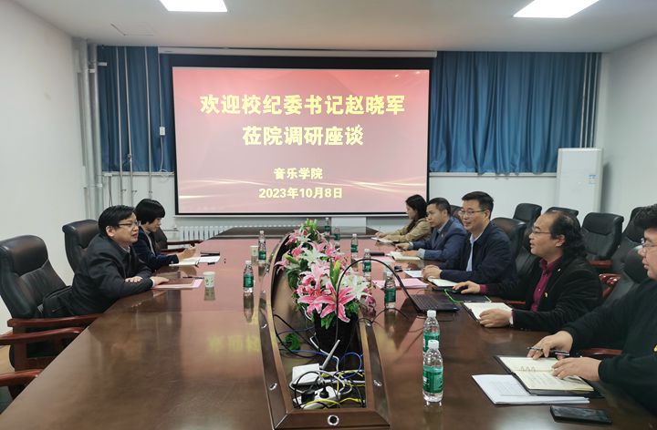 10月8日,校纪委书记赵晓军深入音乐学院就党建、人才队伍建设、科研、特色高质量发展等工作进行专题调研,并主持召开座谈会。