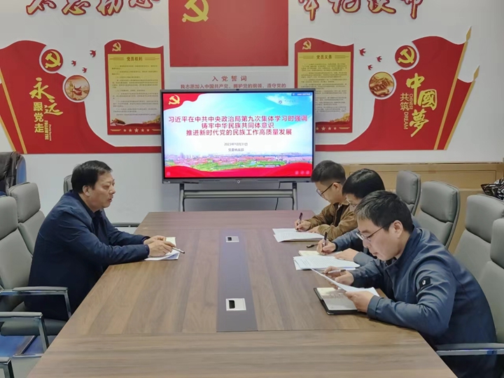 10月31日,党委统战部部长杨玉海主持召开专题学习会议,传达学习习近平总书记在中共中央政治局第九次集体学习时强调铸牢中华民族共同体意识,推进新时代党的民族工作高质量发展重要讲话精神。
