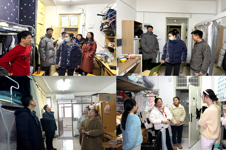 12月29日,研工部相关领导,研工部(研究生院)全体人员深入南北校区12栋研究生宿舍走访,调研研究生生活学习状况。