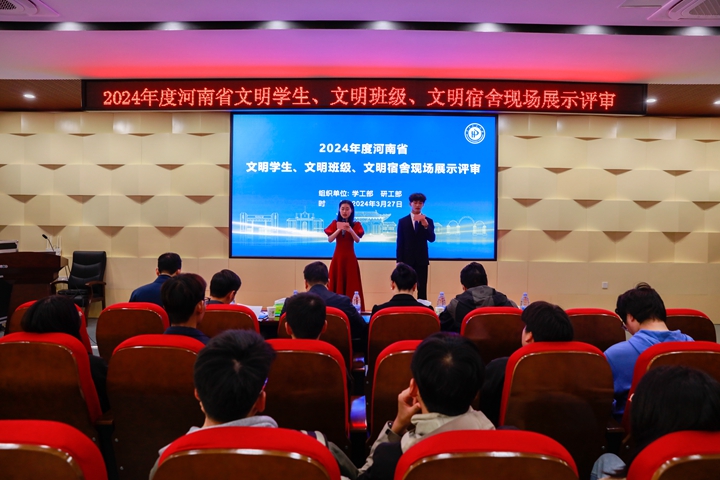 3月27日下午,学校2024年度河南省文明学生、文明班级、文明宿舍现场展示评审工作在土木学院101会议室开展。