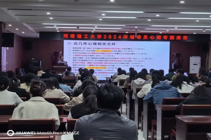 4月3日上午,学校在物电学院开展2024年辅导员心理专题培训,邀请校心理咨询中心专家潘子彦担任主讲,各学院(书院)副书记和专兼职辅导员聆听讲座。