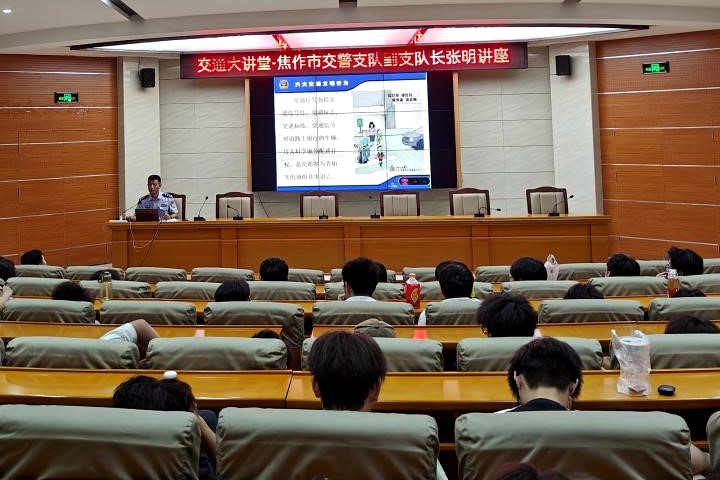 5月21日,受能源学院邀请,焦作市交警支队副支队长张明以“文明驾驶,安全出行”为主题做专题报告。