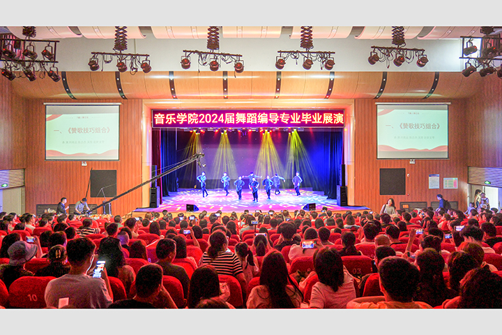 6月5日晚,校小礼堂座无虚席,“藝”颗红心-音乐学院2024届舞蹈编导专业毕业展演顺利开幕。校纪委书记赵晓军,党委统战部、学工部、研工部、教务处等单位负责人,音乐学院领导班子及学校师生代表共计700余人观看展演。开场群舞《我和我的祖国》展现民族之花,赓续民族之魂,颂扬盛世繁华。