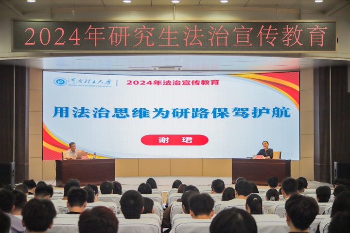 9月25日下午,邀请学校宣讲团专家、文法学院副院长谢珺在力行楼学术报告厅作以“用法治思维为研路保驾护航——研究生学习生活中的常见法律问题”为题的专题讲座。