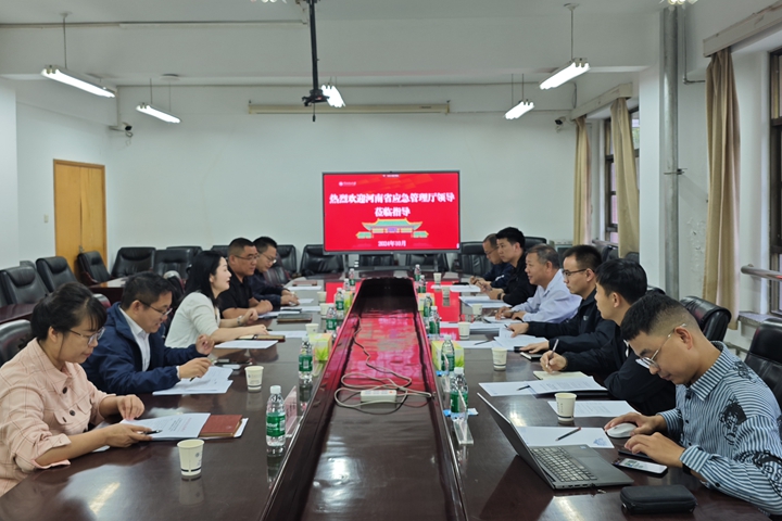 10月10日,河南省应急管理厅应急管理技术中心总工程师张胜利一行六人到校调研应急安全领域建设成效,学校在力行楼224会议室举行座谈交流会,会议由教务处副处长吴鋆萍主持,安全学院、应急学院、测绘学院相关领导,教务处相关科室人员参加座谈会。