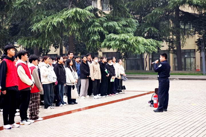 11月12日下午,软件学院与保卫处在北校区二号教学楼前进行了消防演练活动。