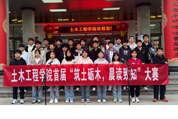 土木学院于11月12日——15日早晨,在学院楼前广场举行首届 “筑土砺木 晨读致知”大赛。