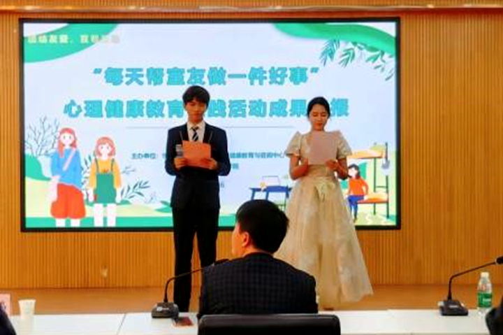11月26日下午,由学生工作部(处)、心理健康教育与咨询中心主办,外国语学院承办的“每天帮室友做一件好事”心理健康教育实践活动成果汇报展示在外国语学院302多功能会议厅举行。