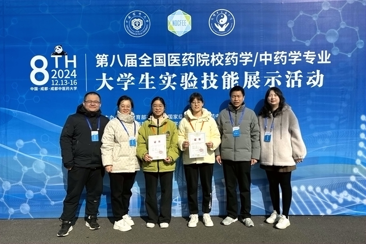 12月13日至15日,“第八届全国医药院校药学/中药学专业大学生实验技能展示活动”在四川成都举行。医学院2021级药学专业本科生郭秋玉、王敏君参加了此次比赛。经过长达五个小时的理论测试与技能操作两轮展示环节,郭秋玉、王敏君两名同学以优异成绩分别获得大赛的银奖和铜奖。