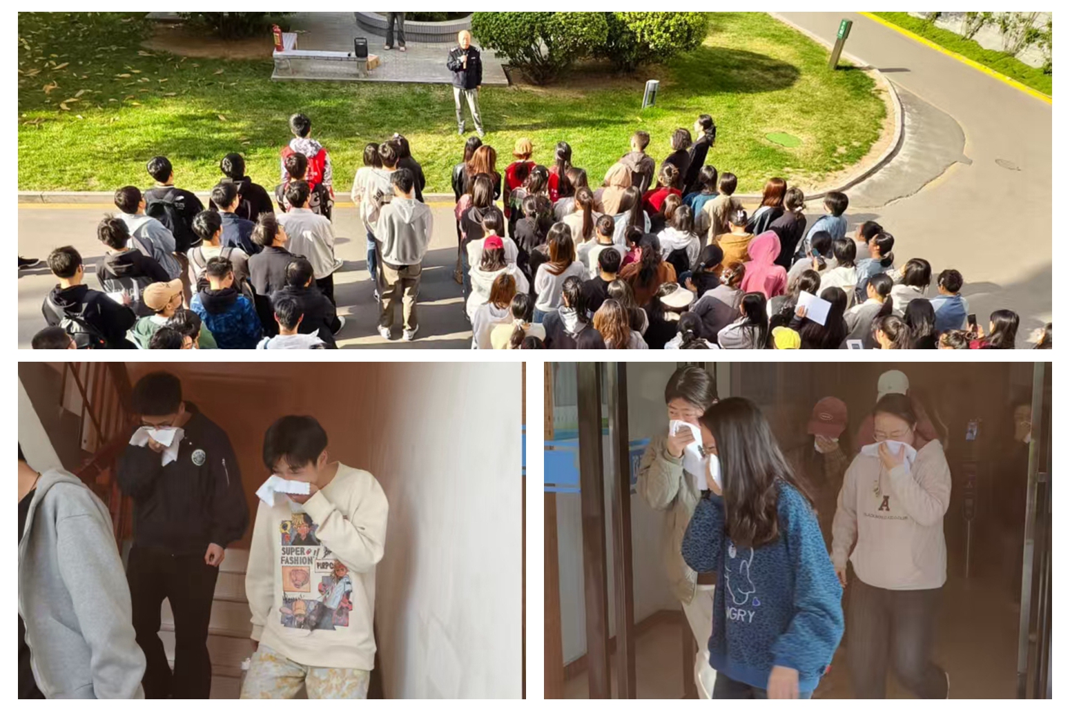 为强化师生消防安全意识,提升火灾应急处置能力,4月1日下午,文法学院联合保卫处在北校区5号、8号公寓楼开展消防疏散演练。