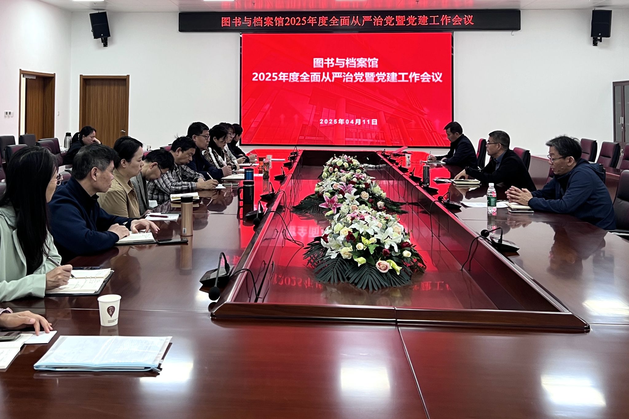 4月11日上午,图书与档案馆在第一会议室召开2025年全面从严治党暨党建工作会议。