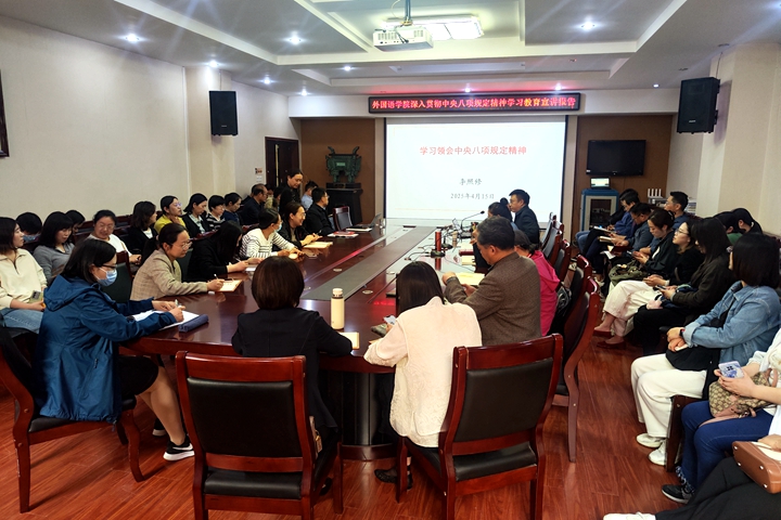 4月15日,外国语学院邀请校宣讲团专家、校纪委副书记李照修作题为《学习领会中央八项规定精神》的专题辅导报告。