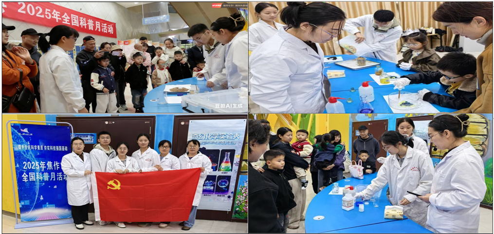 10月12日下午,化学化工学院化学实验中心支部携大学生生活化学协会骨干成员联合焦作市科技馆,举办了一场“奇幻化学实验秀——色彩与形态的奇妙变换”全国科普月化学科普活动。