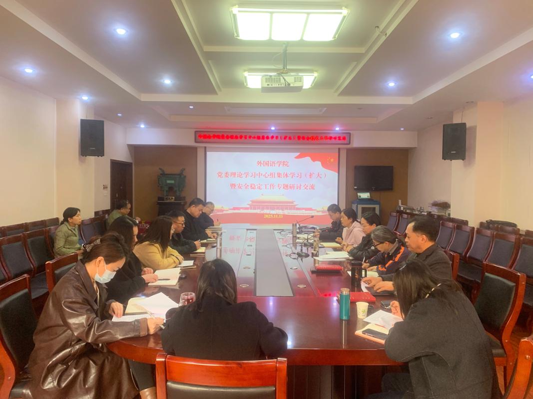 11月11日上午,外国语学院在文综楼311会议室召开党委理论学习中心组(扩大)集体学习研讨暨安全稳定工作研讨交流会。