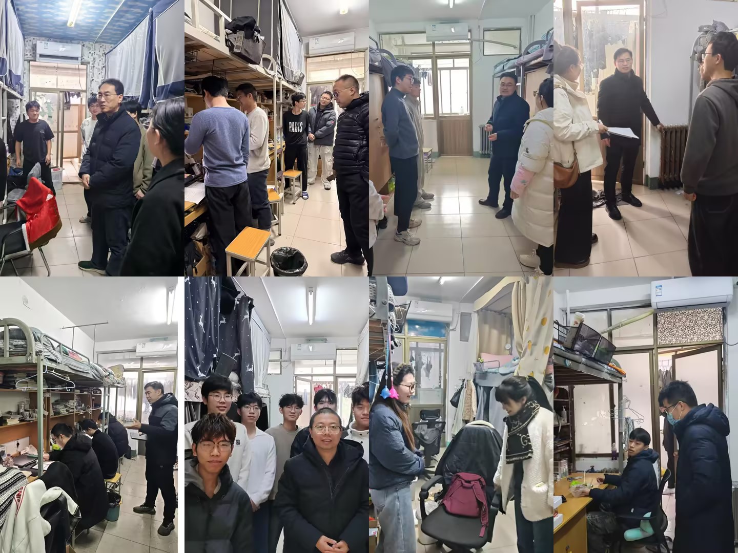 为及时了解学生期末阶段的思想动态与学习生活情况,进一步加强宿舍安全管理,12月23日上午,机械学院领导班子、全体班主任及辅导员分组到本科生与研究生宿舍走访。